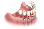 Bij verlies van meerdere tanden of kiezen is een implantaatbrug meestal de beste manier om de functies van het gebit weer volwaardig te herstellen. Het comfort en het kauwvermogen van een implantaat gedragen brug of implantaat gedragen kronen is vele malen beter dan van een frameprothese. Eerst worden de implantaten geplaatst. Na een genezingsperiode van 2 tot 6 maanden wordt hierop de porseleinen brug aangebracht.